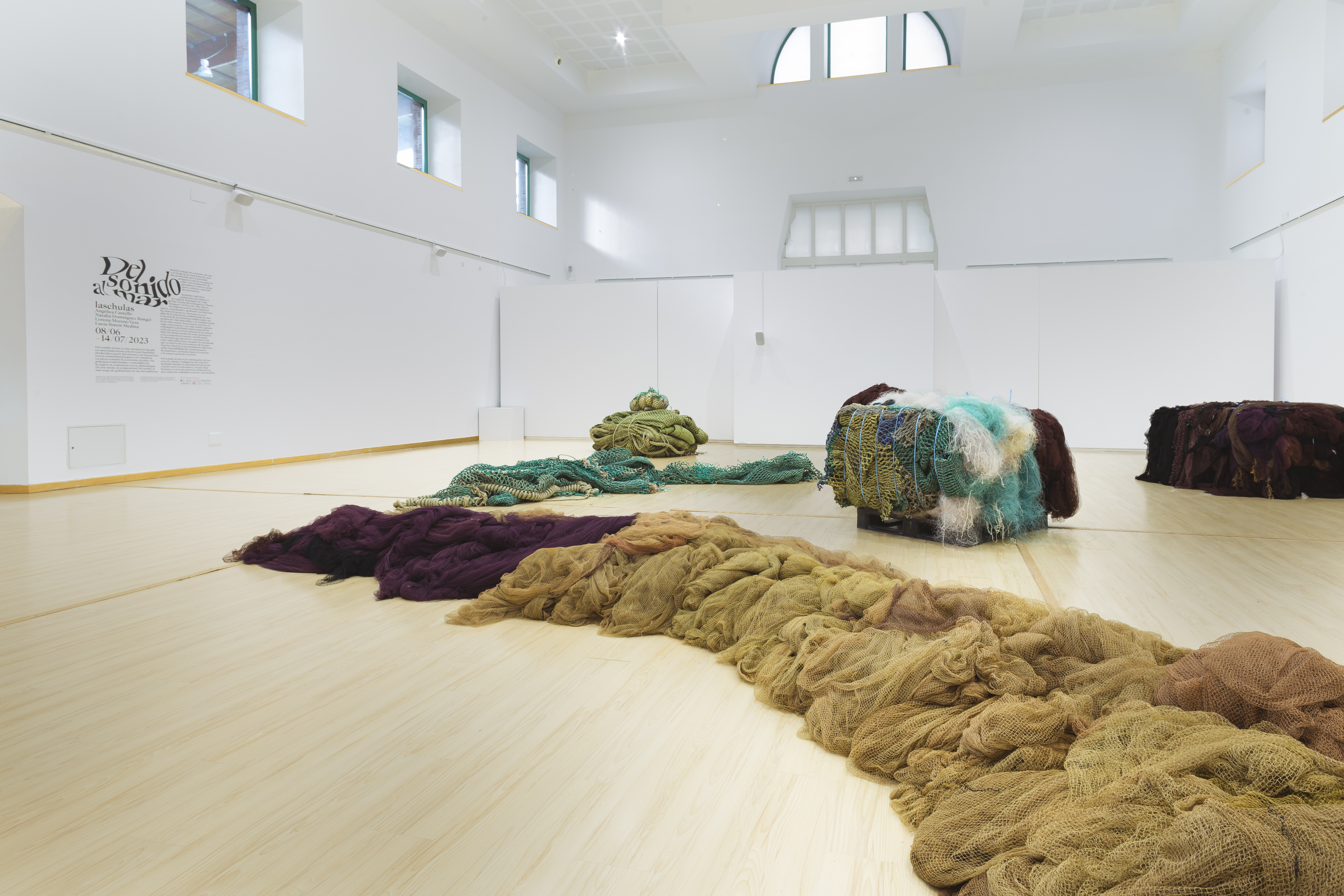 laschulas made field recordings in the Santander fish market, the San Vicente de la Barquera fish market, the fishing district, and the Cabo Mayor lighthouse. By collaborating with the fishing community —listening to and recording their stories— the fishing nets became the mainstay of the exhibition, symbolizing the interconnectedness of their traditional practices, their sustainable livelihoods, and the complex fabric of coastal life. Their presence resonates in every conversation and every sound captured, reflecting the profound importance of fishing nets in shaping the community. Likewise, the nets permeated the sound composition, interconnecting the different perspectives and encounters of eight different ears, creating an interweaving that reveals the diverse nuances of the collective experience. This installation reflects on the possibility of transforming practices and attitudes toward the consumption and conservation of resources.