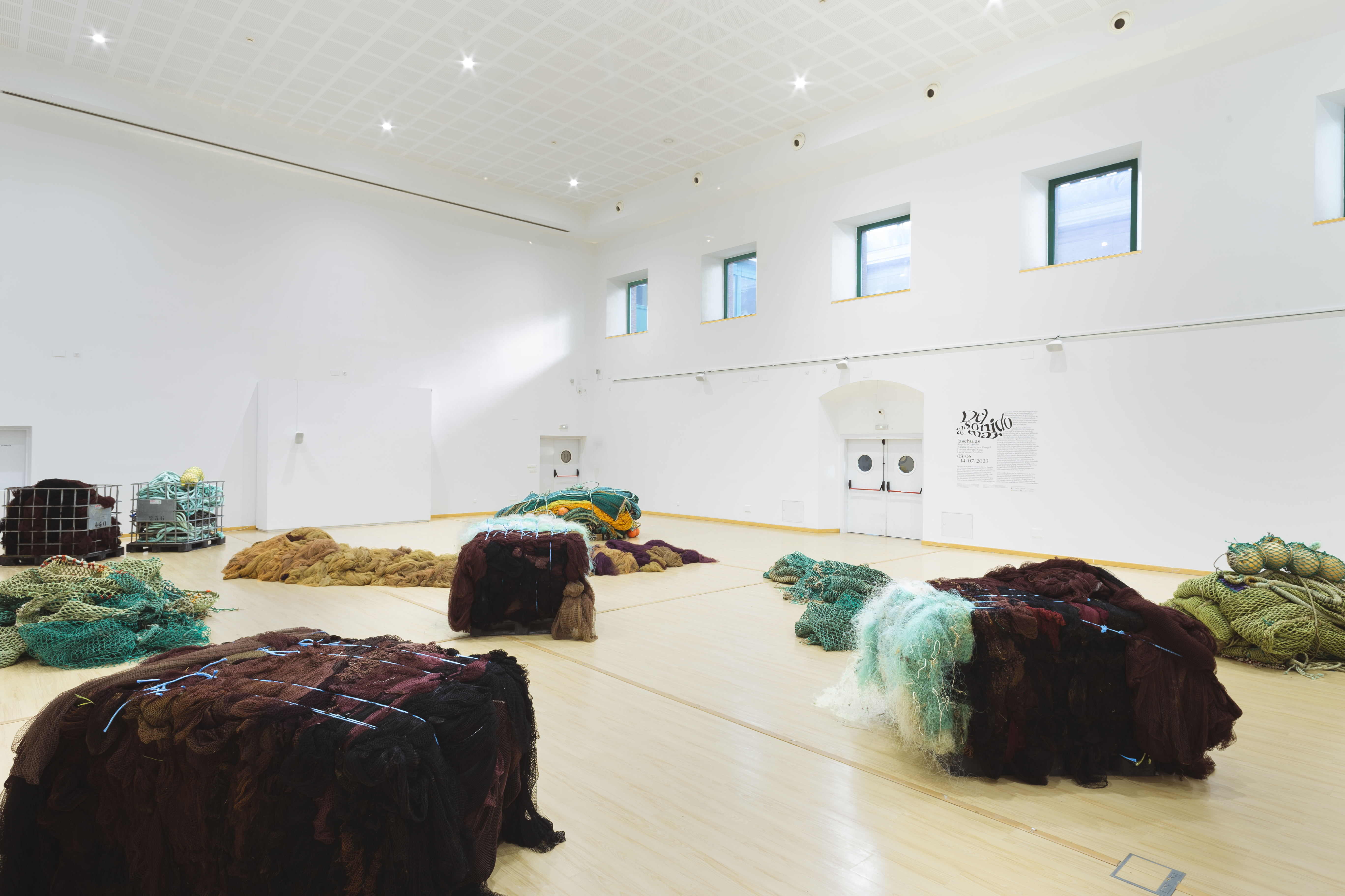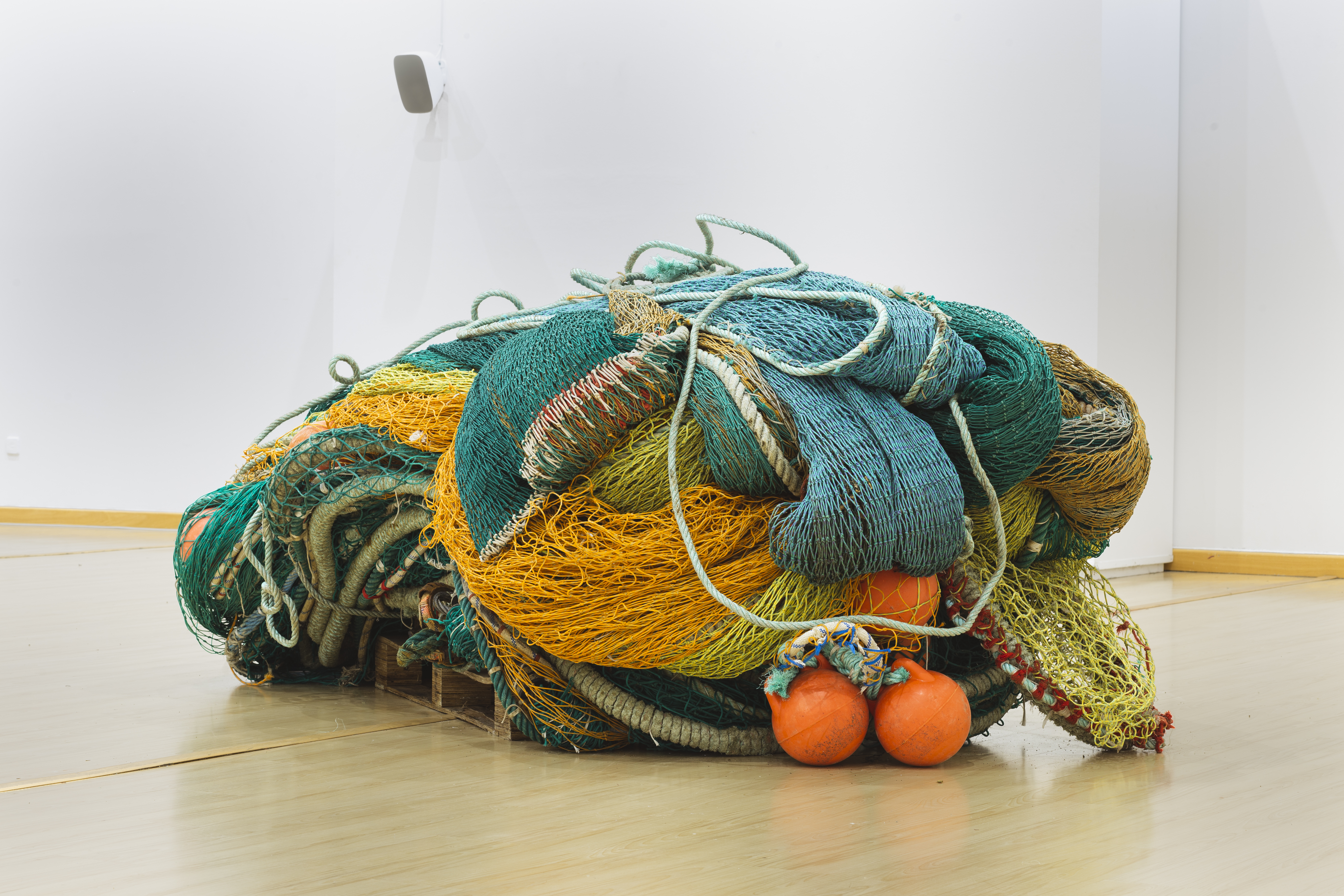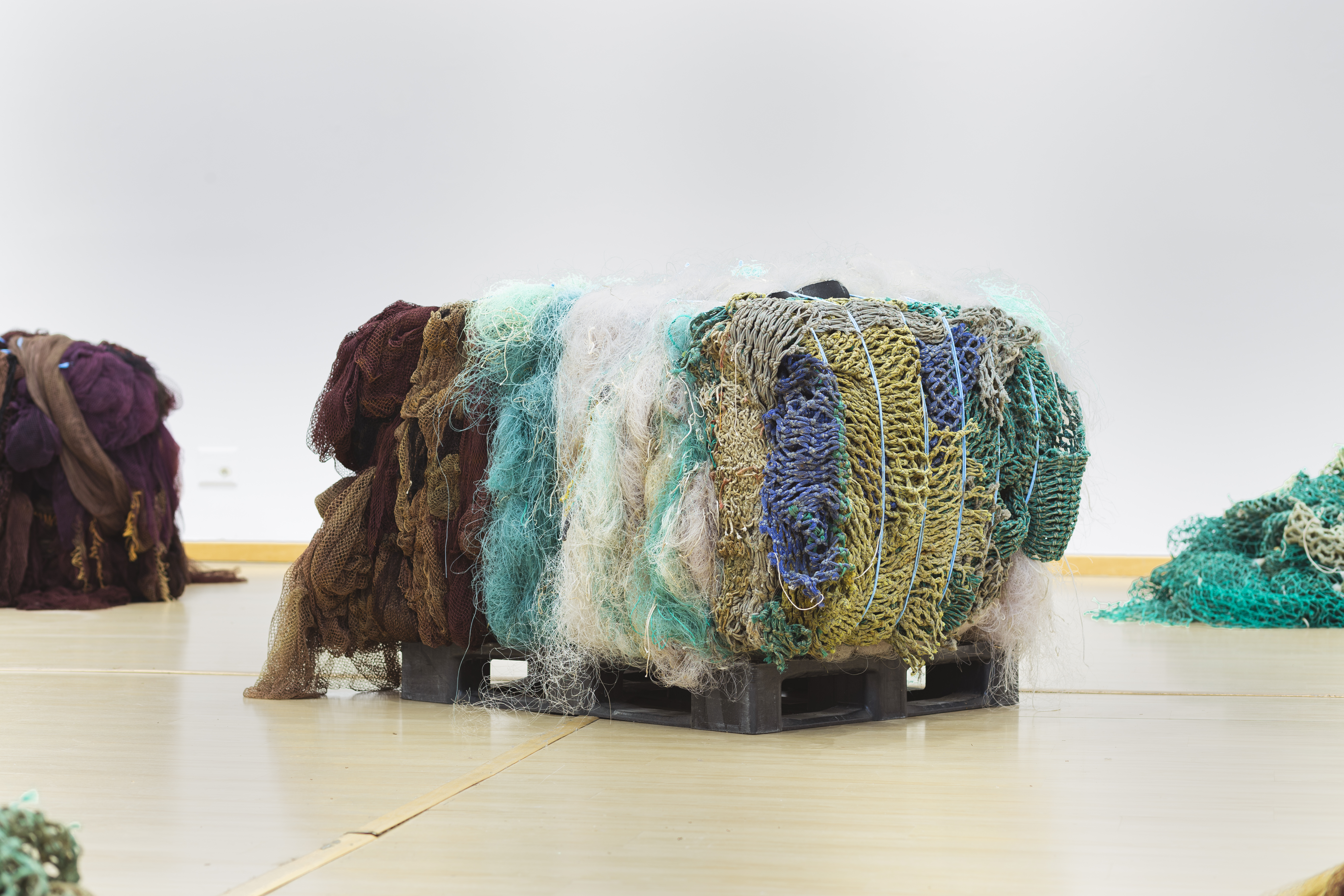 The fishing nets used in the exhibition are discarded nets provided by the Port of Santander, Cayón Gestión y Servicios and Gravity Wave. After their presence at the exhibition, they will be processed for recycling.